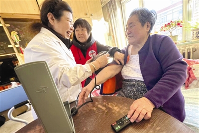 近日,本市气温骤降至零下10℃左右,和平区南营门街文化村社区的日间照料志愿者入户为老人测血压、问诊,送上冬日的关爱。据日间照料负责人薄金蕊介绍,近年来,社区拓展延伸服务,志愿者与10名高龄独居老人进行了结对帮扶。