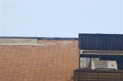 昨日,建昌道街梅宏园小区6号楼外墙突发脱落,碎石从楼顶坠下,事发位置紧邻人行通道。