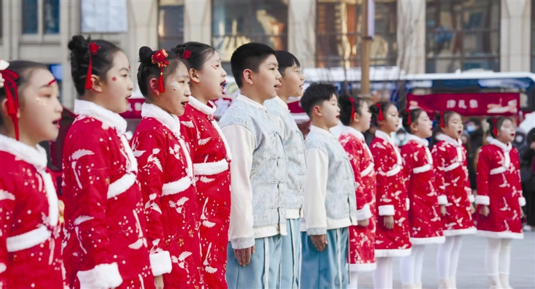 作为“无界津湾”跨界融合的惊艳开篇,当法鼓雄音壮阔时空,舞狮腾挪跳跃灵动,观众喝彩不断时,狮、乐戛然而止,5岁孩童天籁之声破空而出:“长亭外,古道边,芳草碧连天……一曲李叔同大师的《送别》,正式拉开了津籍大师音乐作品展演的帷幕。李叔同、曹禺、施光南、王莘四位天津籍大师的佳作依次上演。素有“海河之子”之称的李叔同,三首作品暗藏巧思:《送别》辞旧岁、《春游》迎新春、《祖国歌》礼赞山河;戏剧泰斗曹禺的《日出》,道尽天津市井百态与时代肌理,其剧作底蕴深厚、影响深远,是中国戏剧史上的丰碑;津籍大师施光南的《在希望的田野上》旋律悠扬,满含对生活的热忱;天津原创《津门故里等你来》载满乡土温情,尽显津派艺术多元风采。