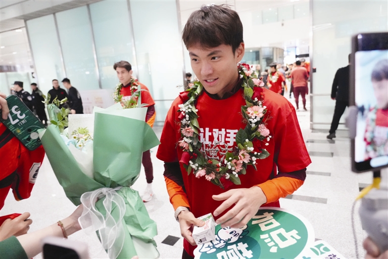 队员们身着印有“让对手忌惮未来”字样的定制T恤归来,袁永清等为队员戴上花环,全队在到达出口与球迷见面。人气最高的是在U23亚洲杯上奉献了超过33次扑救的守门员李昊,球迷不断呼唤他的名字,有小球迷用零花钱为李昊买了一束鲜花。李昊、拜合拉木等队员代表满足了所有球迷的签名需求。接受采访时李昊表示:“收获非常多,我们赢了非常多的对手才拿到第二,但决赛输了就是输了,也没有什么虽败犹荣,回去好好总结。”拜合拉木说出了大家最想听到的话:“以后的比赛拿个冠军回来!”
