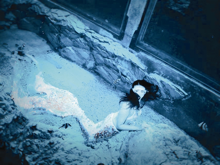 在陆地上学习了一段时间后,已经基本掌握技能的傅洁,开始进入水下实践环节。在海洋馆里,她穿上美人鱼的服装,和各种各样的海底生物一起游泳,那个场景,让她至今难以忘怀。
