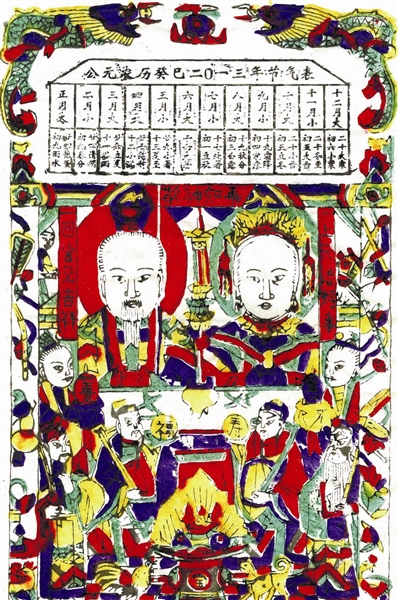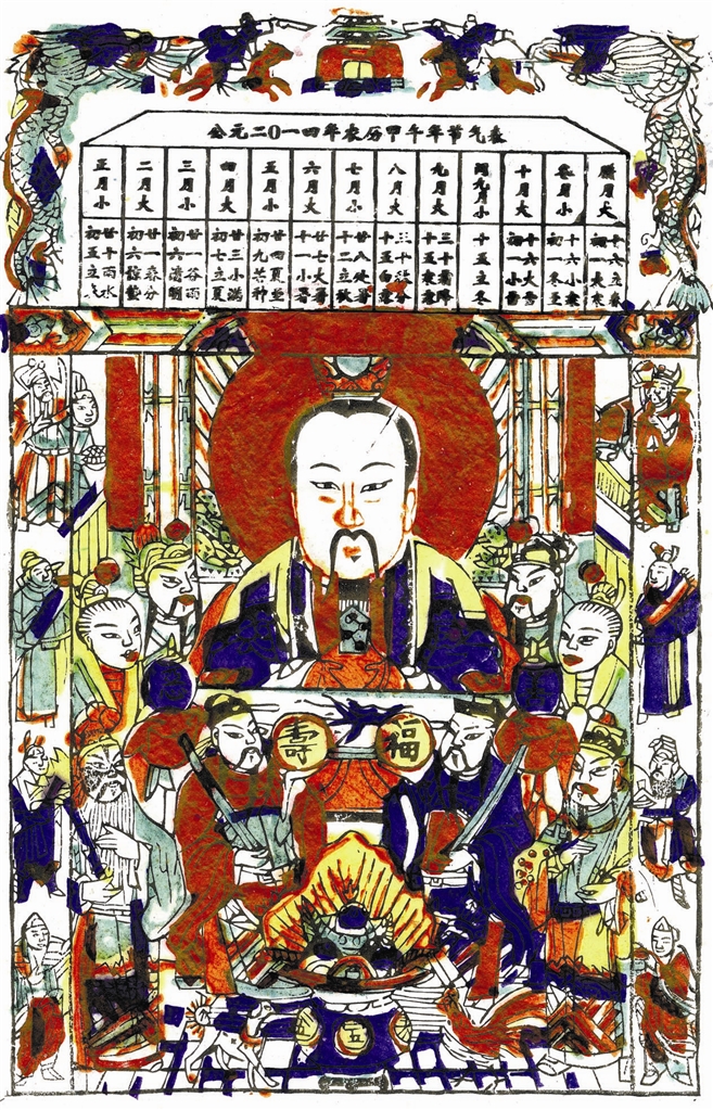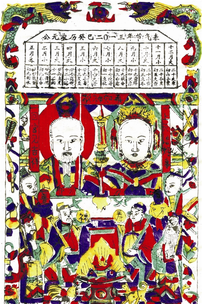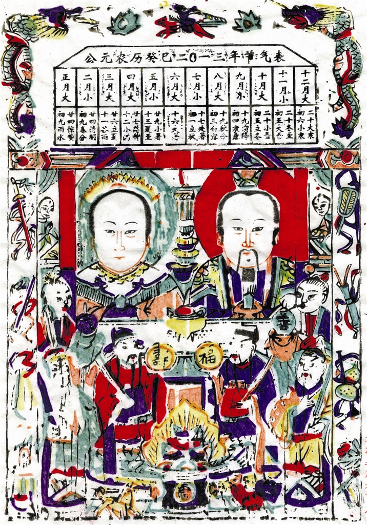 字头儿,即灶王年画最上面的廿四干支节气表。廿四节气是中国古代一种用来指导农事劳动的补充历法,影响着千家万户的衣食住行。