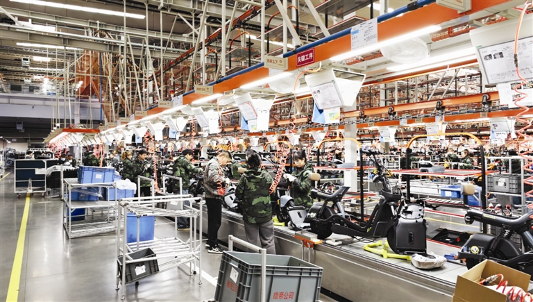 春节假期结束,本市各行各业开启复工模式,工地上、厂房里,大家都干得热火朝天。图为新国标电动自行车生产线节后开工满负荷运转。摄影 记者 姚华
