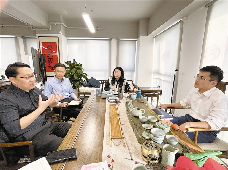 10:50,处理完手头紧急事务的李桢、马文娣和吕永哲一行三人,来到天开园7号楼裙楼众创空间2层的斐树科技,与公司副总经理王亚宗深入沟通人才需求。