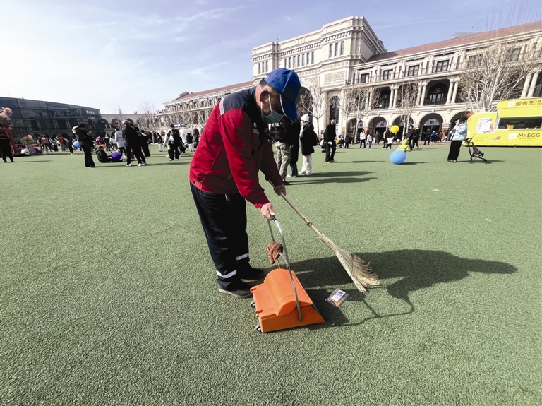 “草坪上只要有一点垃圾就特别明显,我们眼睛里容不得沙子,再小的杂物也会及时收走。”这位环卫人员告诉记者,他专门负责草坪区域的卫生,工作内容就是一遍遍来回巡查,清理卫生,一天下来要走近3万步。