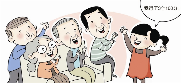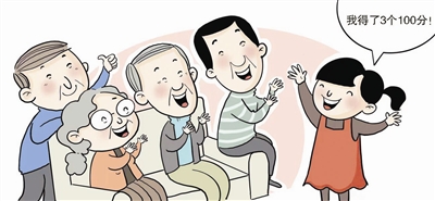 妞妞一下子从爸爸——也就是刘大爷小儿子的怀里挣脱出来,胳膊举得高高的,大声说:“我第一个汇报。我期末考试考了3个100分,语文、数学和英语都是100分。老师说全年级只有我跟另一个男同学考了3个100分,别的同学都不如我俩考得好。”妞妞得意地跳到爷爷身边说:“爷爷您说我棒不棒?”爷爷伸出大拇指:“我们家妞妞,又聪明又努力,过去的一年里表现非常好,是大家学习的榜样。”得到了爷爷的表扬,妞妞激动得小脸红扑扑的,那表情,是铁了心要继续努力,接下来再拿个好成绩。