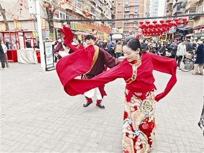 作为桃花节分会场之一,西北角特色街区昨天上演了一场别开生面的快闪活动。