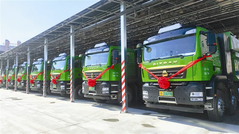 其中,一期项目已全面建成投用,总占地面积6000余平方米,全面淘汰原有的柴油车辆,引进41辆新能源渣土车。配套能源设施包括铺设1644块光伏组件,日均发电量在3500度至4500度之间;配备12台储能电源(总容量3084度)和10台新能源充电桩(20把充电枪)。该设施采用“自发自用”模式,所发电量优先用于保障新能源运输车辆的日常充电需求,基本实现用电自我平衡。日前举行的二期项目交车仪式上,20辆新能源渣土车正式交付,下一步将再配套建设10台充电桩,进一步提升车队的清洁运输能力。两期项目全部建成后,该企业新能源渣土车总数将达到61辆,形成更加完整的清洁能源运输体系。