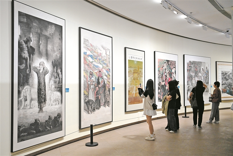 当日,“第十届丝绸之路国际艺术节——今日丝绸之路国际美术邀请展”在位于西安的陕西省美术博物馆开幕。本届展览以“丝路共鸣·无界艺术”为主题,展出作品700余件,涵盖国画、油画、版画、水彩画等多个艺术门类。新华社记者 邹竞一 摄