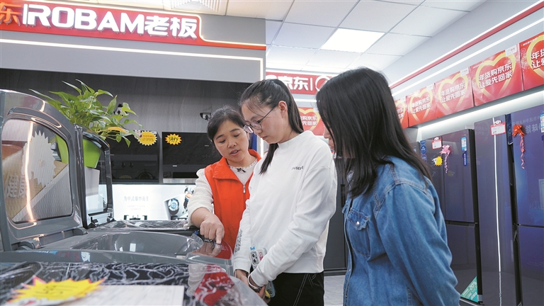 “这次买了一键预约的电饭煲,洗地机和智能吸油烟机,智能抽油烟机吸力大、噪音小,还可以自动识别场景开启照明、检测空气质量等功能,家中正在装修开放式厨房,高品质的家电才能满足家人需求。”在七师胡杨河市百惠美居商贸有限公司,刚刚采购到心仪家电的市民胡婷婷说道。
