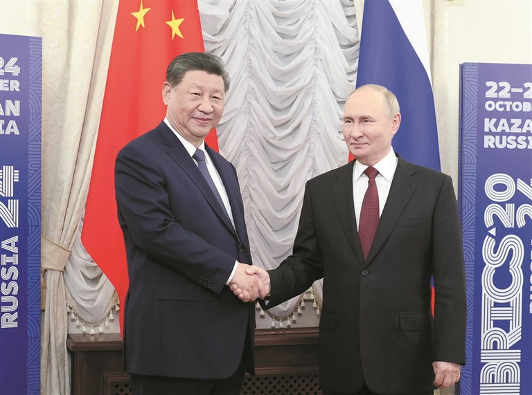 习近平强调,明年是联合国成立80周年,也是世界反法西斯战争胜利80周年。作为联合国安理会常任理事国和世界主要大国,中俄要深化全面战略协作,密切在联合国、上海合作组织等多边框架内沟通协调,弘扬正确二战史观,坚定维护以联合国为核心的国际体系,共同维护全球战略稳定,维护国际公平正义。