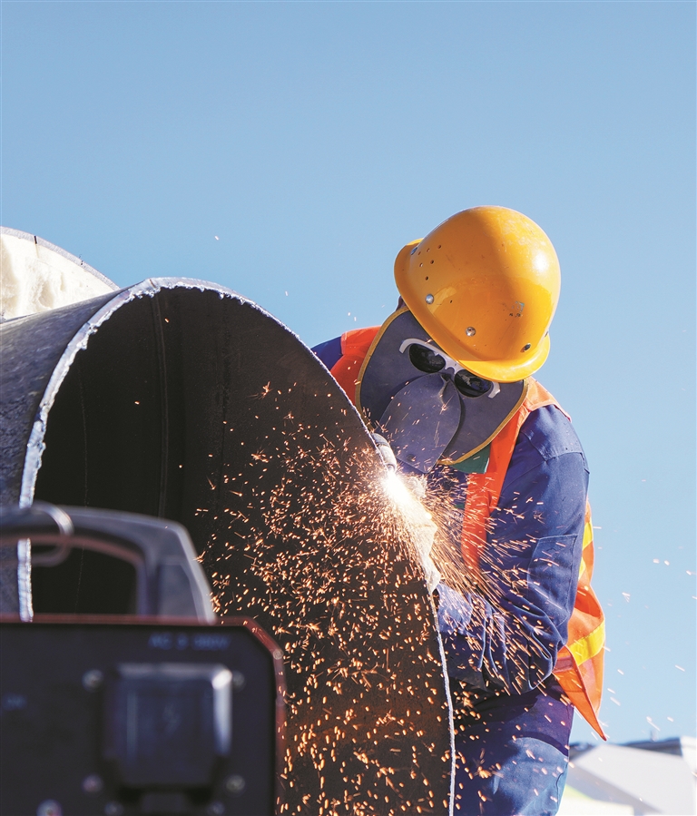 10月21日,在白杨市中心城区市政基础设施一期项目施工现场,工人进行焊接作业。该项目总投资33.23亿元,新建的47.72公里道路及配套管网等设施,将进一步完善白杨市路网结构,助推区域经济社会发展。 兵团日报全媒体记者 陈洋 常驻记者 苟汇敏 摄