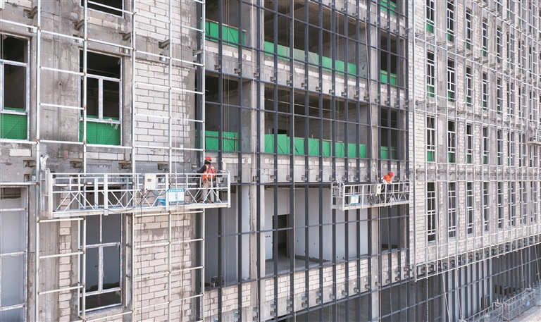 10月22日,在三师图木舒克市大数据产业园项目施工现场,工人认真施工。该项目总投资1.85亿元,建成后将引入大数据、人工智能、云计算、区块链等信息技术企业,提供产业数字化服务,助力当地实体经济实现转型升级。 兵团日报全媒体记者 常丫丫 通讯员 高磊 摄