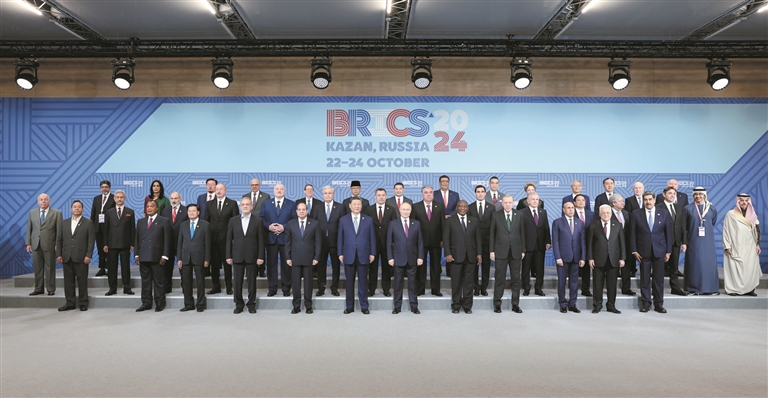 当地时间10月24日上午,国家主席习近平在喀山会展中心出席“金砖+”领导人对话会并发表题为《汇聚“全球南方”磅礴力量 共同推动构建人类命运共同体》的重要讲话。这是出席对话会的金砖国家及嘉宾国领导人或代表、国际组织负责人集体合影。 新华社记者 姚大伟 摄