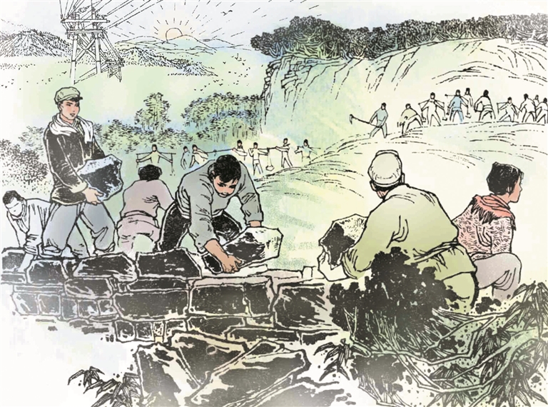 9.在修渠引水工地上,贾书钦一干就是20多年,与职工群众一起克服重重困难,用实际行动践行着兵团人的责任和担当。