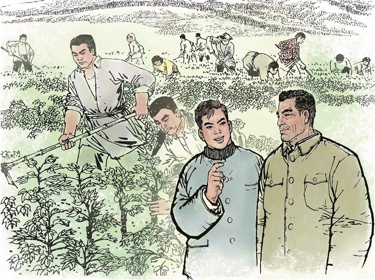 4.抗美援朝战争结束后,贾书钦回到了家乡。1956年3月,王恩茂将军来到许昌,招募老兵保卫建设边疆。“当时有人觉得新疆条件艰苦,不愿意去,但是我愿意去新疆,到祖国最需要的地方作贡献。”怀着这样的壮志雄心,贾书钦来到了农一师(现一师)。