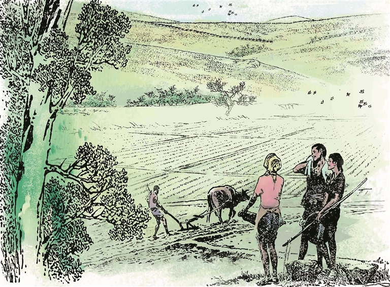 6.就这样,贾书钦和战友们在塔里木垦区修通了一条条水渠,开垦出一片片农田。
