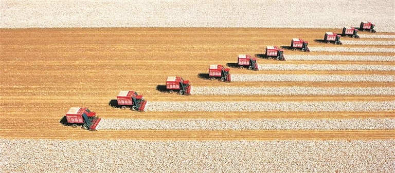 春播有精量播种机,夏管有植保无人机,秋收有自走式打包采棉机,冬忙有“科技范”十足的设施大棚……