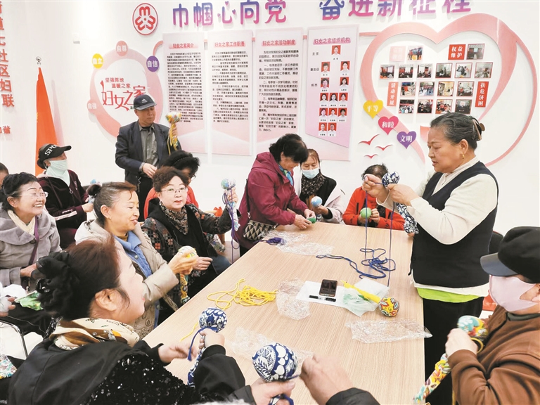 11月2日,在八师石河子市新城街道7社区文化站,社区老人们认真学习制作艾草养生锤。一个时期以来,新城街道积极开展形式多样的敬老志愿服务,丰富社区老年人精神文化生活,增强老年人的健康意识,不断提升老年人的生活质量和幸福感。 杨明 摄