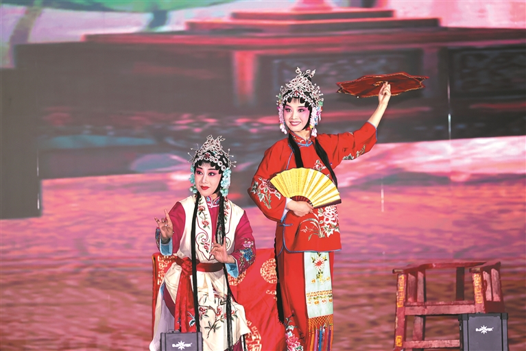 2023年“文化和自然遗产日”启动仪式在六师五家渠市文化中心广场举行。图为演员们表演折子戏《挂画》(摄于2023年6月9日)。兵团日报常驻记者 李华北 摄