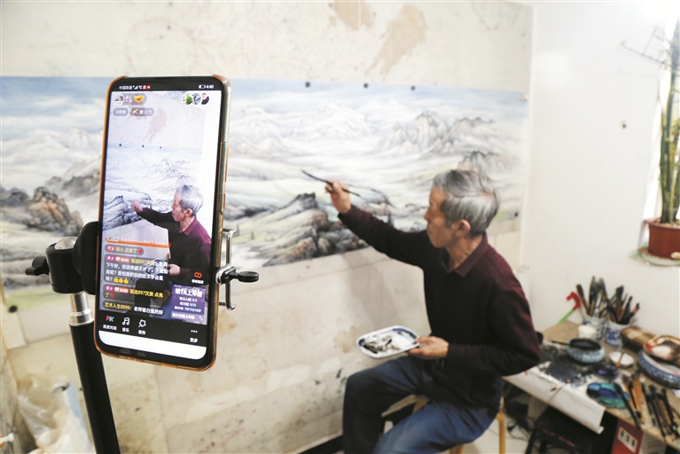 通过不断地尝试和努力,目前,杨德发的直播间现有粉丝2.5万余人,他创作的山水、花鸟、人物为题材的国画,也有了新的销售渠道和展示平台,一幅作品能卖到1000至3000元不等。尝到“甜头”的杨德发又利用“文艺展示+销售”“现场创作+销售”等方式,创造出了更多效益。