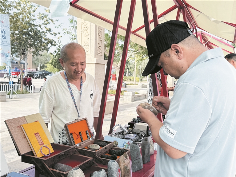 渐渐地,宋玉的雕刻技艺越发娴熟。2015年,他的作品《枣趣》入选中国百位石雕艺术家精品展;2018年,他获得“兵团文化能人”称号。