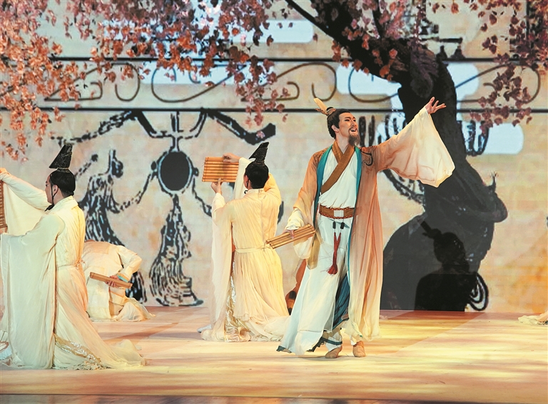 11月6日,演职人员在表演民族舞剧《孔子》片段。当日,首届世界古典学大会在北京国家博物馆举办专场文化演出,中国歌剧舞剧院的艺术家们在舞台上展现中西艺术之美。 新华社记者 张晨霖 摄