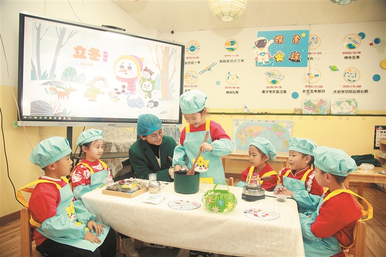 11月6日,在六师一〇一团青湖幼儿园,老师通过讲故事、实践指导等形式,为幼儿讲解立冬节气的寓意和习俗。近年来,一〇一团各中小学利用传统节日及二十四节气等节点,开展丰富多彩的校园文化活动,帮助学生了解中华优秀传统文化,增强文化自信。 魏新江 张子墨 摄