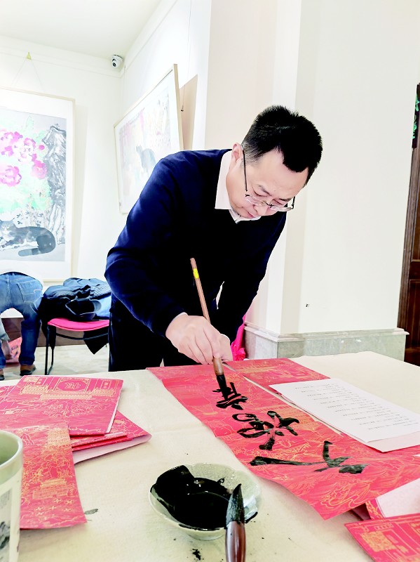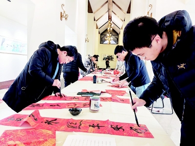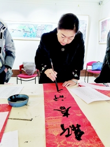活动现场,青年书法家挥毫泼墨,把对新春的美好祝福倾注笔端、融入创作中,一张张红红火火、喜气洋洋的福字,一副副寓意吉祥、满载祝福的春联展现在大家眼前。