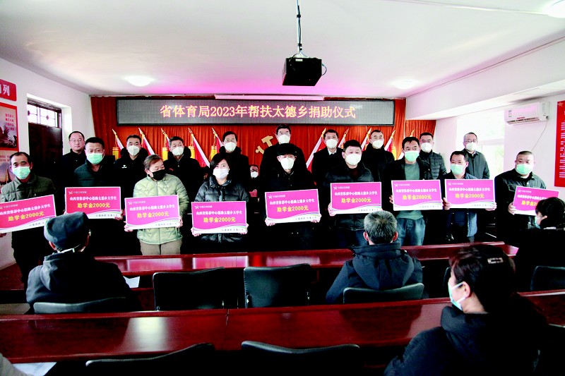 1月10日,“省体育局2023年助学帮扶太德乡”捐助活动走进大宁县太德乡政府,省体育局党组书记、局长赵雁峰,局二级巡视员李润民,局人事处、办公室、省体彩中心有关负责同志,大宁县委、县政府有关负责人等参加活动。