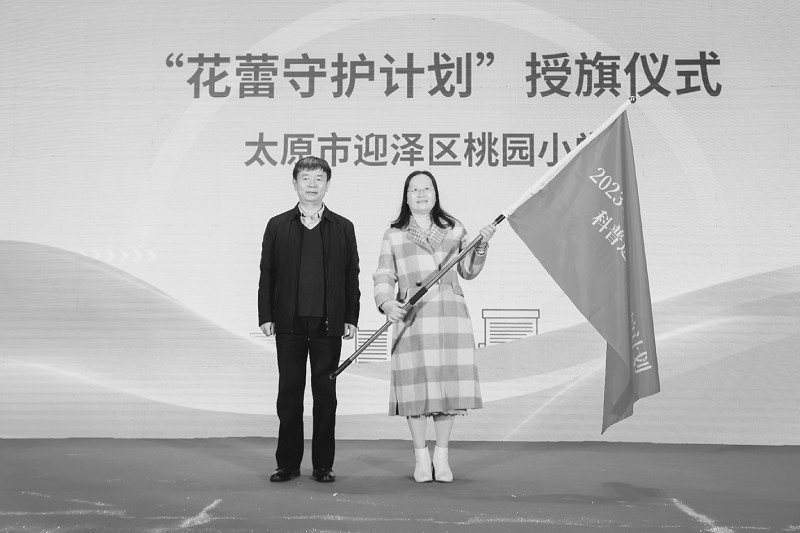 现场,与会专家为“花蕾守护计划校园科普专家组”成员颁发了聘书,为此次公益活动首批10所响应的学校授予“花蕾守护单位”牌匾。山西省医学会副会长兼秘书长柴志凯为此项公益活动的首站——太原市桃园小学校代表授旗。