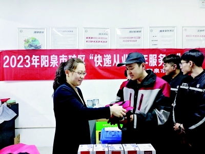 团大同市委联合大同市邮政管理局为快递员代表送上300张体检卡和300套防寒物资。