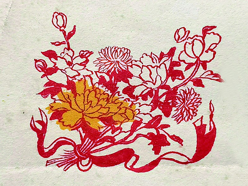 从款式和装帧设计来看,邀请书不像普通的单面或双面请柬那样简单、随意、朴素,而是比较讲究和用心的。譬如,版心上下边端由文武线担纲,醒目而有力,版面左端印有牡丹、菊花等花卉组成的双色花束,右端则绘有光芒四射的单色五角星。显然,此基本构思和创意源自团旗核心设计元素“五角星圆环”图案,而且将“圆环”与外围的光芒融为一体,更加艺术化,尽显活泼动感和活力洒脱。版心底端之上是红黄双色的花框,证书所有文字为绿色,整体设计风格显得美观、活泼和精致,使受邀者能深切感受到来自邀请者的那份热情、尊重和诚意。