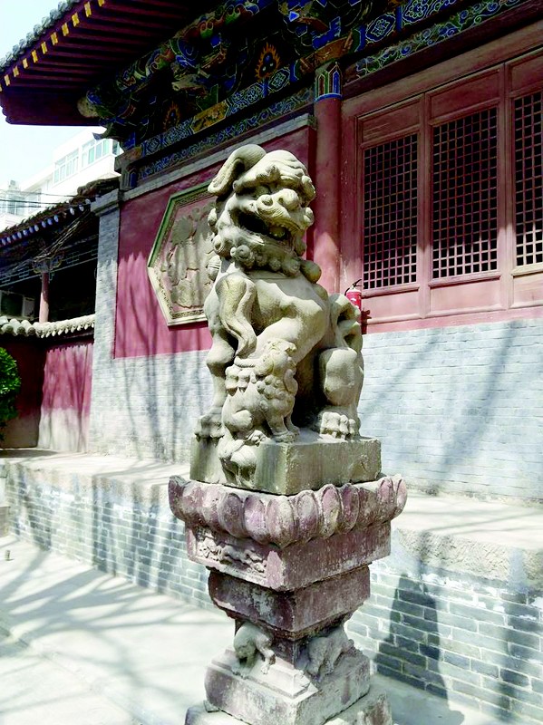 进入文庙大门,是第一进院,正面建有一个椭圆形的砖彻泮池。池中的一座拱桥将泮池分成东西两半,池子的正北面有2个吐水的石雕龙头,由陈村峪流出的溪水潜流注入,池水清澈。