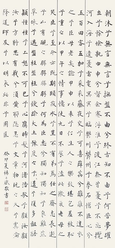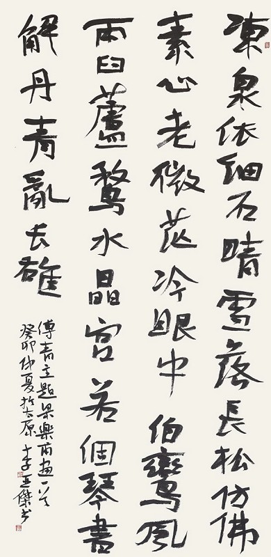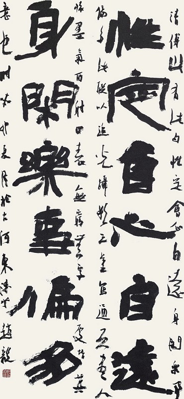 傅山作为明清之际的重要历史文化名人,被史家喻为“学海”,在诸多领域多有建树,造诣甚高。他“引古筹今”,研究范围宏伟广大,对经史、诸子、道教、佛教、诗文、书法、绘画、音韵、训诂、金石、考据、杂剧等都有精湛研究,是当之无愧的文坛宗师。他与当时的孙奇逢、黄宗羲、顾炎武、王夫之等知名学者齐名,同被后世尊为“遗老之魁硕,后学之津逮”“学必实用,动为世法”的学界泰斗。他精通诸体书法,人谓“草楷篆隶俱造绝顶”,被黄道周称为“晋唐后首推公佗”,被梁启超称为“清初六大师”之一。傅山喜以篆隶笔法作书,重骨力,宗颜书而参以钟王意趣,并受王铎书风影响,形成自己独特的风格。其书法笔势雄奇,连绵飞动,起伏迭宕,字间连带自然,表现出生气郁勃的宏大气势。傅山 “宁拙毋巧,宁丑毋媚,宁支离毋轻滑,宁真率毋安排”的艺术主张,以自然天倪为尚,三百多年来一直备受推崇。