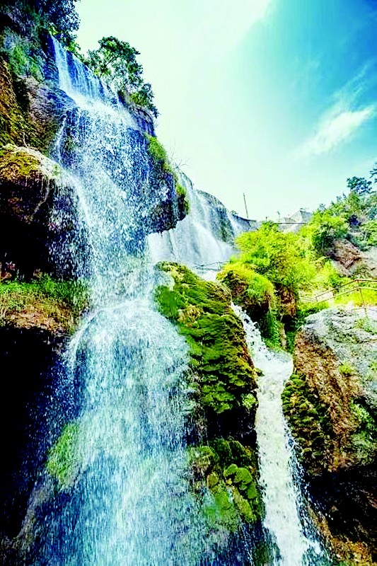 除了城门的雄伟枷锁外,娘子关实际上是一座美丽的山峰,这里的水资源很丰富。它拥有华北地区最大的岩溶泉群,泉域面积3600平方千米,泉水集中区域为娘子关、河滩等5个村,总面积22平方千米,大量不间断的泉水融入瀑布,沿着悬崖倾泻而下。