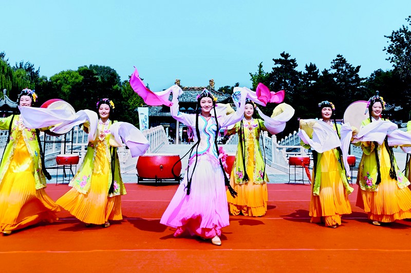 庙会期间,“天鼓迓旭”展示了古老黄河、晋阳文化中动人心魄的民间艺术——“中国第一鼓”;“龙腾舞狮”翻腾飞跃,或憨态可掬,或勇猛威严,赢得观众的阵阵喝彩;“圣母大祭”按照传统祭祀礼仪,展示了晋祠的祭祀文化;“花容晋韵”汉服出行活动,让游客沉浸式体验古今融合的国风穿越之旅;以圣母殿“侍女”为原型,讲解员自主创作、编排的舞蹈《宋塑华裳》,带游客深度了解了宋代服饰及宫廷生活;原创话剧《唐风晋韵话晋祠》以晋祠历史和传说典故为内容,历史与戏剧艺术相融合,带游客沉浸式回眸晋祠千年,探源三晋文化;《龙兴盛会》情景剧则通过 “迎宾”“开市”“礼乐”“圣驾出巡”“晋祠之铭并序碑”5个章节再现了唐太宗李世民重游晋祠、御书留碑的盛世场景。