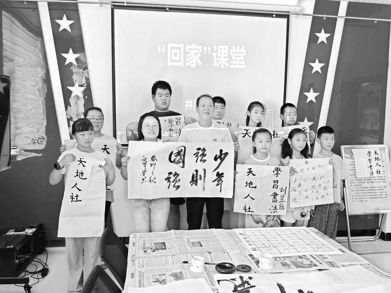 8月16日上午,在阳泉市矿区赛鱼街道井沟社区的“回家”学堂里,孩子们在书法、棋艺等“老师”的引领下,享受着轻松愉悦的暑假生活。