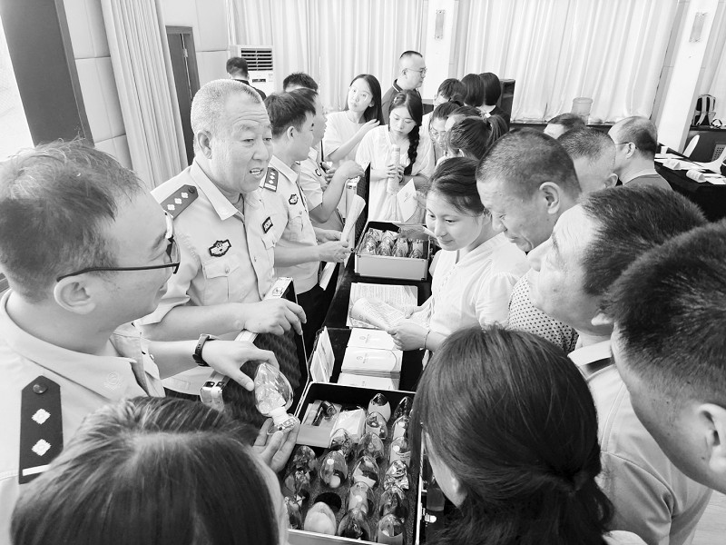 “这是鸦片,这是吗啡,这是大麻,这是隐蔽性较强的新型毒品‘邮票’和‘跳跳糖’……希望大家平时提高警惕,学会识辨毒品,让自己的青春不‘毒’行”。活动现场,该所宣讲团成员通过发放宣传资料、展示仿真毒品模型等形式,向社区矫正工作人员逐一介绍毒品的种类和危害,传授他们识毒、防毒、拒毒的方法和技能,普及《中华人民共和国禁毒法》《戒毒条例》有关知识,呼吁大家遵纪守法,人人争做禁毒斗争的宣传者、推动者和践行者。