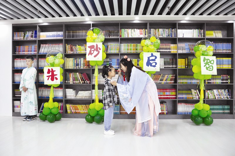 8月29日,太原市迎泽区东岗小学举行了开学典礼,老师们用“朱砂启智”新颖的欢迎仪式迎接一年级新生。