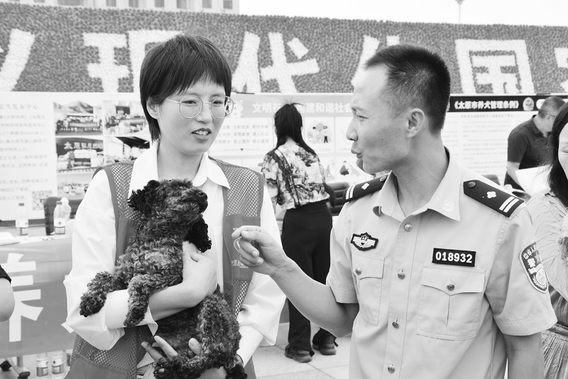 领养犬只、颁发监督员证书、现场办理犬证、宠物医生爱心义诊……8月29日下午,一场文明养犬宣传活动在太原市晋源区新城广场进行,不少爱犬人士现场领养了心仪犬只。此次活动由太原市公安局会同太原市农业农村局、太原市公安局晋源分局、晋源派出所联合举办,旨在增强市民群众依法养犬、文明养犬的意识,全力营造文明养犬环境,推进养犬精细化管理工作,进一步推动全市依法文明养犬风尚形成,共同营造文明和谐的社会氛围。