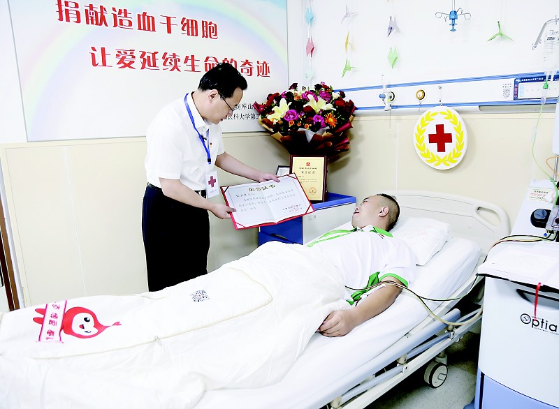 采集捐献日上午,山西省红十字会党组书记、常务副会长尚日红,山西省红十字会社会工作服务中心主任高凡,朔州市红十字会和中煤黑龙江煤炭化工集团的领导等专程前往医院看望慰问,对他无偿捐献造血干细胞、挽救患者生命的爱心行为表示高度赞扬,并为他颁发了捐献造血干细胞荣誉证书。