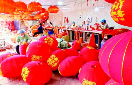 随着中秋和国庆“两节”将至,在运城市百年传统灯笼产销集散地——稷山县稷峰镇杨赵村灯笼产业园区,数百名村民正加班加点赶制红灯笼,现场一派红红火火的忙碌景象。