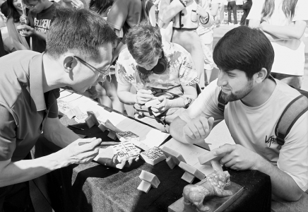 9月17日,山西师范大学书法学院在该校“思政文化街上”举办了以“印记流年,镌刻梦想”为主题的陶瓷印艺体验沙龙活动,现场为大学生讲解了陶瓷印的独特之美及篆刻方法。活动还吸引了留学生前来学习体验中华传统文化,将“团结、创造、求实、奋进”校训及经典诗词等内容刻于陶瓷印上,用亲手制作的“文创”为母校建校65周年送上祝福。