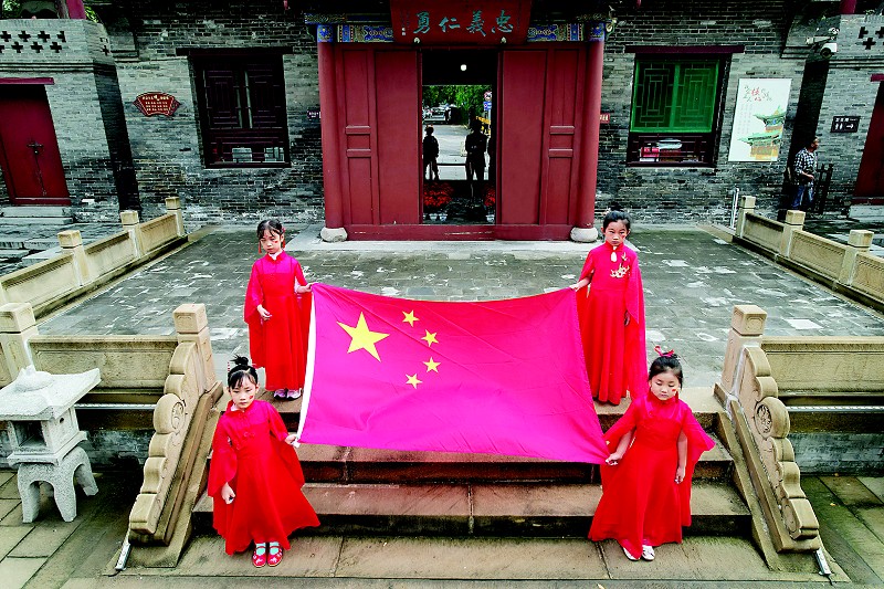 活动现场,孩子们身着红色传统服装,手持国旗,热情高唱《我和我的祖国》。随后,大家用古筝演奏了《我和我的祖国》,既深情又庄重,让听众激情澎湃,倍感自豪。