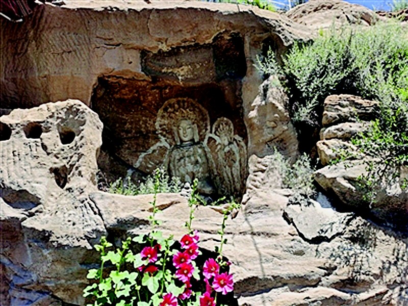 由于历史原因,初始的造像未能保存下来,留下遗憾。令人欣慰的是,岩壁上的几行石刻经文保留了下来,经考证是释迦牟尼的第一部著作中的一部分。
