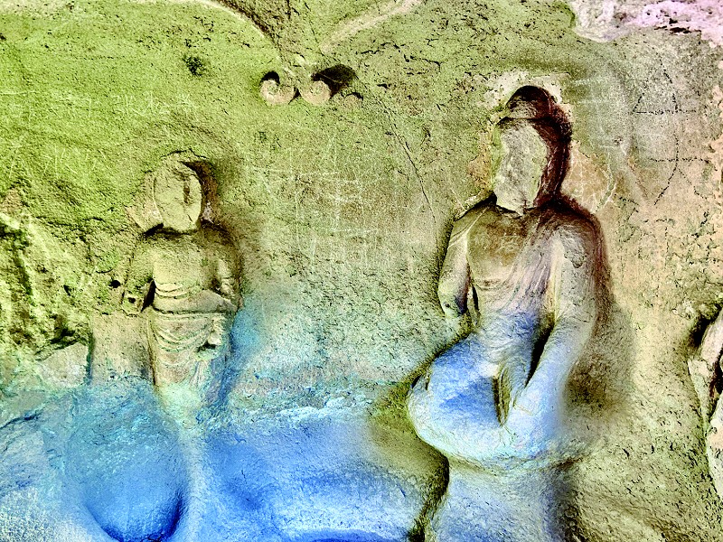 石窟位于主路的两侧,无论从哪边先行参观都可以。漫山阁,即是“天龙八景”之一的“佛阁停云”。该洞窟分上下两层,下层是十一面观音菩萨立像为本尊,以骑狮、象的文殊和普贤为肋侍,建造时代约为中晚唐。上层的弥勒大佛约为晚唐作品,是我国古代艺术珍品。