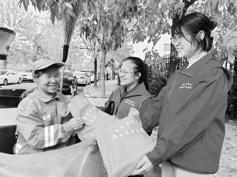 10月24日,国网山西送变电工程有限公司所属基层单位联合太原市小店区营盘街道并州南路一社区新时代文明实践站开展志愿服务活动,为驻地路段工作的“城市美容师”送去装有护手霜、保暖耳罩、洗衣粉等物品的“爱心大礼包”,向他们表达问候和由衷的敬意,并和他们一起清扫道路卫生。