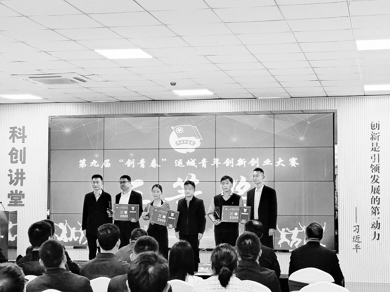 共青团新绛县委、团绛县县委、团夏县县委荣获第九届“创青春”运城青年创新创业大赛优秀组织奖;“晋霖艾业——智慧中医,智能艾灸项目”荣获第九届“创青春”运城青年创新创业大赛一等奖;“群星拾梦——基于人工智能助力星光天使项目”、“果脆加工项目-半山腰山楂种植加工项目”荣获大赛二等奖;“垣曲县优质香菇示范园项目”、“张良红薯产业融合基地项目”、“绛县益元坊有限责任公司项目”荣获大赛三等奖。团省委、团市委相关负责人及市委网信办、市科技局等相关部门负责人依次为获奖单位和选手颁奖。