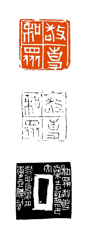 其二是立足当代。以当代之审美立场,去发现、认识、汲取历史遗存,创作出契合当下审美需要、审美环境、审美心理之篆刻艺术。当代篆刻创作受展览形式影响,审美理念与技法形式与孙虔礼所谓“思虑通审,志气和平,不激不厉而风规自远”大相径庭:古人视为“丑书”,当下却备受推崇;古人着意“精美”,今人却视为“匠俗”;相较庙堂官印,私人玺印、残砖断金、片瓦遗陶却倍受青睐。只有立足当代、思考经典,剪裁取舍历代积淀与赋予,激活雅化民间拙野与率真,化腐朽为神奇,可开一代新风。